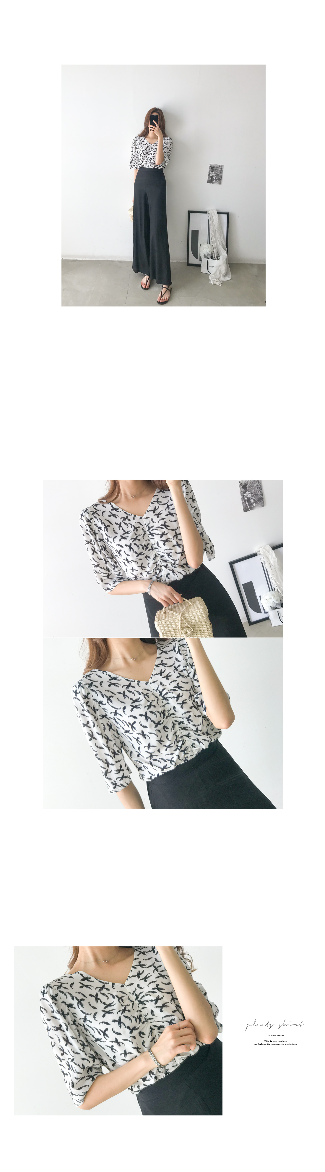 버드 패턴 부드러운 블라우스 #44134