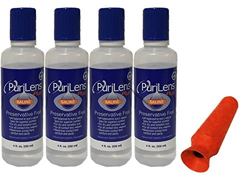 (4) Purilens Plus Saline + Scleral Cup Large Contact Lens Handler (Colors Vary) Bundle