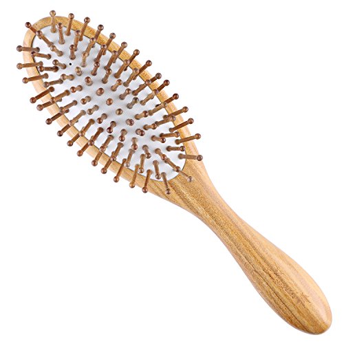 Breezelike Sandalwood Hair Brush - Middle Size Wooden Detangling Massage Brush Handmade with Natural Green Sandalwood