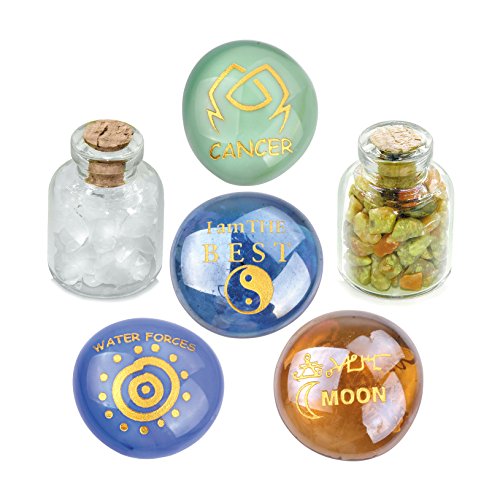 Ancient Zodiac Cancer Yin Yang Powers Birthstones Unakite Quartz Magical Glass Stones Bottles Set
