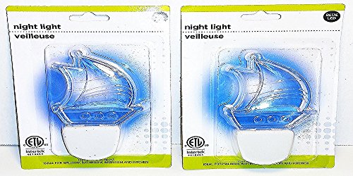 (Pack of 2) Clear Multi-room Blue LED Night Light Nautical Sail Boat