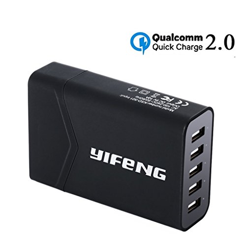 -. Feature : COMPACT DESIGN: Portable travel smart desktop / wall charger for cellphones, tablets and other devices. Small and compact, easy to carry, home travel essential, 5-Port simultaneous charging, 100-240 volt input ideal for international travel / QUICK CHARGE 2.0 TECKNOLOGY: Each USB port intelligently identifies your devices and delivers its fastest possible charge speed up to 2.4 amps per port or 10 amps overall / STABLE COMPATIBILITY: Works perfectly with all IOS and Android devices, including Bluetooth speaker, or other devices charged with usb / GUARANTEED SAFETY: Fully certified by CE, FCC design, industry grade materials and premium circuitry ensure superior performance and reliability. Multiple built-in safeguards protect against over-current, overcharging and overheating for safe and fast charging / QUALITY GUARANTEE: YIFENG 50W 5-Port Desktop / Wall Charger, 6.4ft / 195cm detachable power wire, our fan-favorite 12-month warranty and friendly customer service