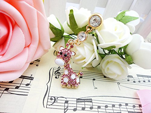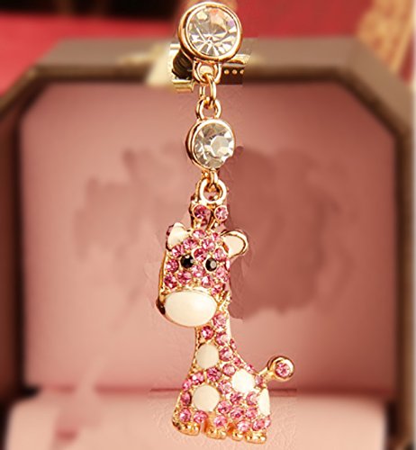 CJB Dust Plug / Earphone Jack Accessory Elegant Pink Giraffe Rhinestone for iPhone 4 4s 5 6 Plus S6 All Device with 3.5mm Jack (US Seller)