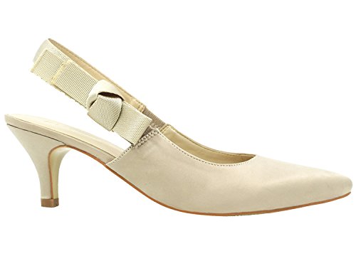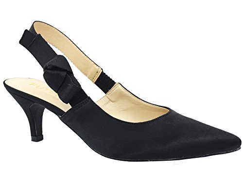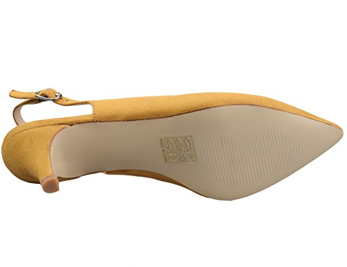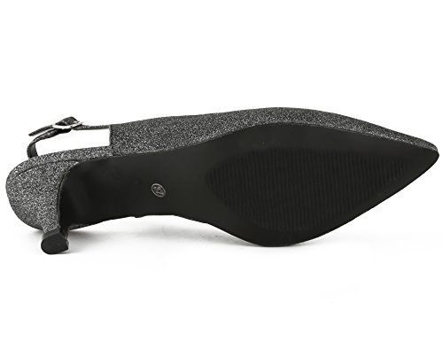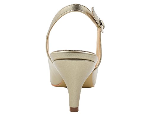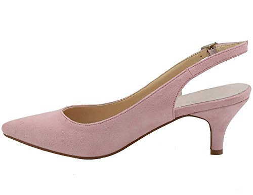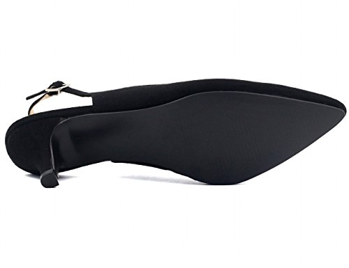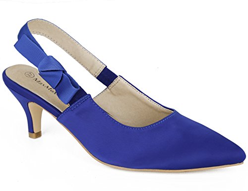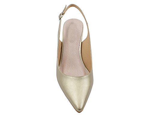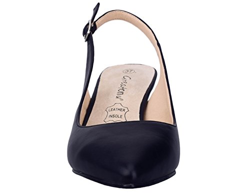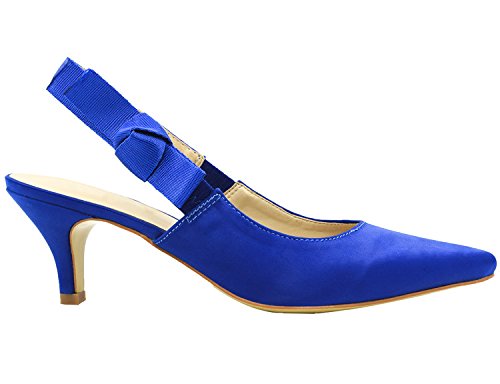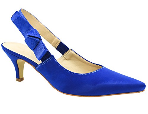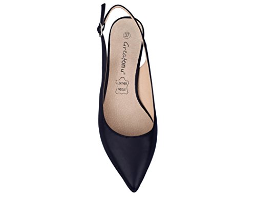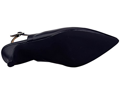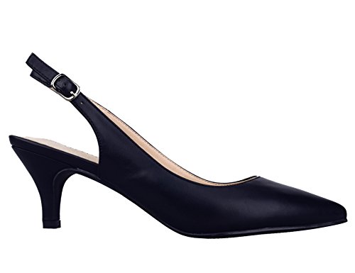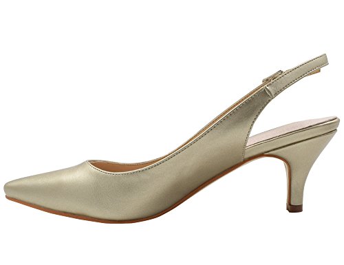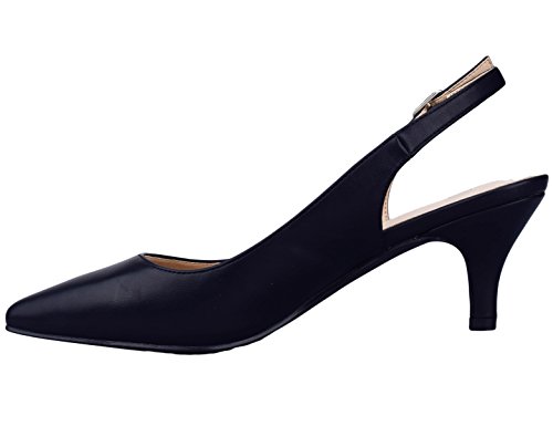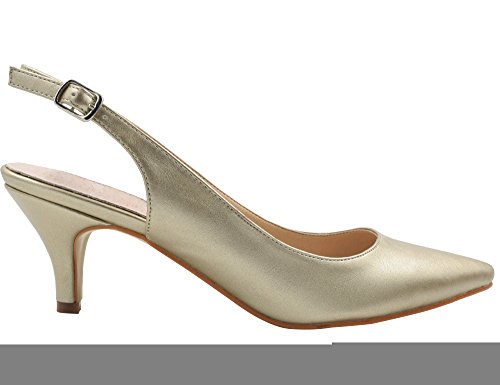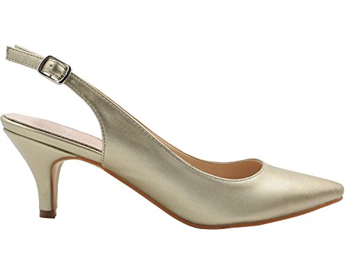 Selling Point leather insole, kitten heels, pointed toe, sexy, slingback, buckle Shoes Details Upper material: Synthetic Lining material: Synthetic Insole material: leather Out-sole material: TPR Heel height: approx 2.5" Platform height: 0.25" Heel type: kitten Occasion Dress, business, bridal, party, office, work, wedding, walking, formal occasion... Size 36 EU/US 5, 37 EU/US 6, 38 EU/US 7, 39 EU/US 8, 40 EU/US 9, 41 EU/US 10 Color Blue, black, gold, pink What's in the box? One pair of your dress pump One Thank you card One packing list 0