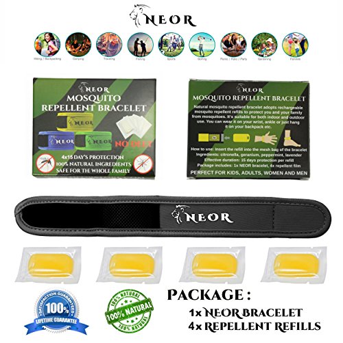 -. Brand : NEOR -. Feature : LONG-LASTING REPELLENT - Bracelet comes with 4 refills and gives you protection for 60 days or more. When your refill is finished, simply remove and replace when done, no need to throw away your bracelet to buy another one. / ADJUSTABLE TO ALL SIZES - The bracelet can be adjusted to fit children and adults of all ages. You no longer have to worry about finding the right size, thanks to the adjustable band. Can also be attached to your backpack, pant loop or stroller. / NO-SPRAY DEET-FREE TECHNOLOGY - You no longer have to spray yourself or your loved ones to protect against pesky mosquito bites. The product is DEET-FREE and is made of natural substances such as citronella, lavender, peppermint and geranium. The combination of these natural substances effectively disrupts a mosquito's ability to sense you! Mosquito Repellent Bracelet is 100% guaranteed to help repel mosquitoes. / PEST REPELLER WITH NATURAL INGREDIENTS - patented to provide absolute satisfaction, our bracelets use mosquito repellent plants that keep garden pests and insects away. No more using toxic sprays with chemicals that only damage your skin! / MONEY-BACK GUARANTEE - offers 24hr protection from mosquitoes and garden pests for a whooping 60 days - love it, or get your money back - that's our promise. This natural mosquito repellent bracelet is backed up by 90 days money-back guarantee. No questions asked! CLICK the Orange button to Order Now! -. IsAutographed : 0 -. IsMemorabilia : 0 -. Label : NEOR -. Manufacturer : NEOR -. Model : Mosquito-Repellent-Bracelet -. MPN : TW-01 -. PackageQuantity : 1 -. PartNumber : TW-01 -. ProductGroup : Lawn & Patio -. ProductTypeName : OUTDOOR_LIVING -. Publisher : NEOR -. Size : Small -. Studio : NEOR -. Title : Mosquito Repellent Bracelet by Neor - all Natural Insect Repeller with 4 Organic Plant Refills - Ideal Pest Control for Travel - Easy To Use and Safe for Babies - no Spray - Without Deet - Waterproof -. Warranty : Manufacturer warranty for 90 days from date of purchase