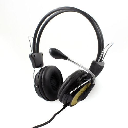 -. Title : Black Gold Tone 3.5mm Stereo Bass Headset Headphone Microphone for Laptop Desktop