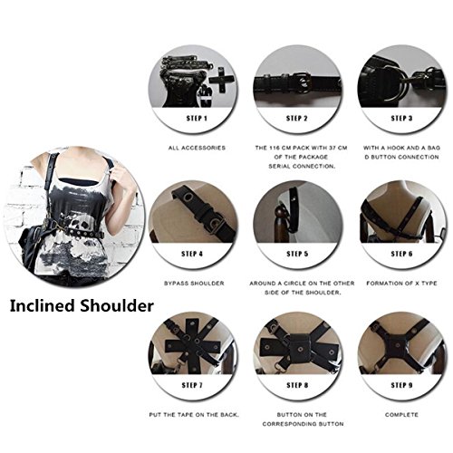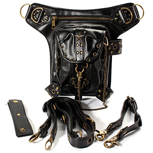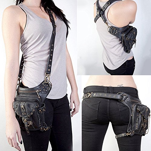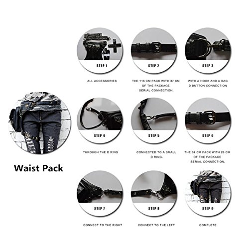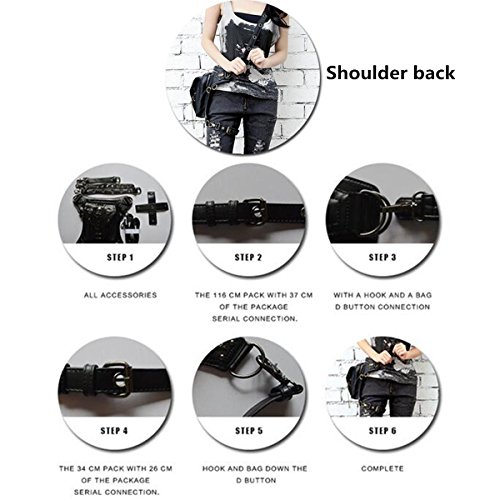 Product Description Specifications: Color:Black Material:PU Leather Lining:Synthetic Leather Long belt: 150cm Short belt: 50cm (adjustable) Total Length: about 24cm-27cm Width:about 18cm [Conversion: 1cm=0.3937 inch, 1inch=2.54 cm] Features: Features: -It can store pocket money, phone,coin and some little thing, etc. -It is fashionable, retro, creative, is a very useful accessory to brighten up your look, but also as a gift. Package Included: 1 x Steampunk Bag