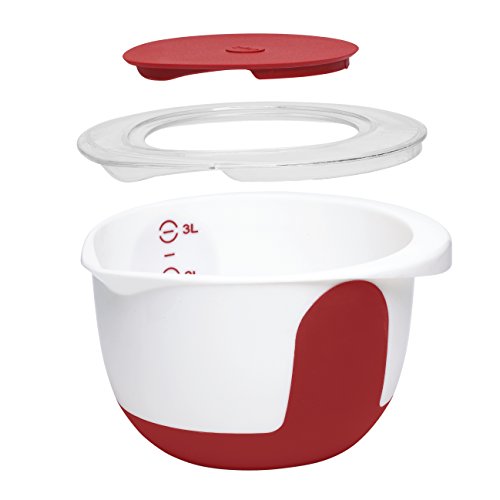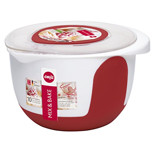 Emsa "Mix & Bake" 101.4 oz Mixing Bowl with Lid, White/Red