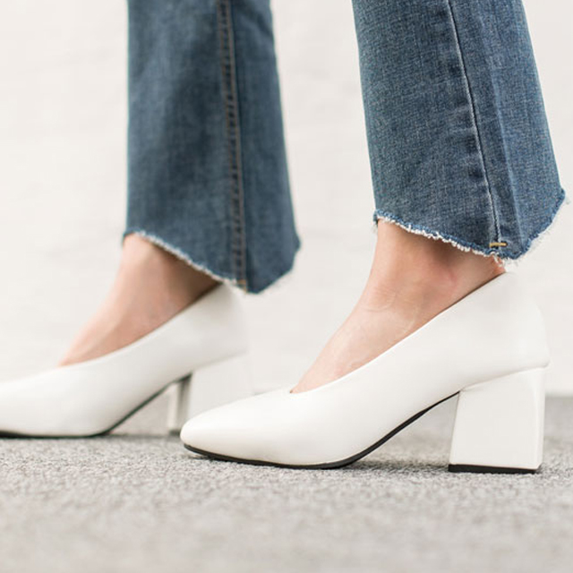 Office Look Shoes White Beige Basic Pumps Tongue Middle Heel 6.5cm 3color