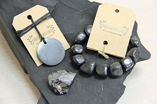 -. Binding : Jewelry -. Brand : Karelian Heritage -. Department : womens -. Feature : Manufactured and packaged by Karelian Heritage ® . GENUINE SHUNGITE MINERAL and finest quality from a producer with business card. / THIS SHUNGITE SET includes one pendant, elite shungite stone and bracelet / SHUNGITE PENDANT: Weight: 5 grams. Diameter: 30 mm Thickness: 4 mm / SHUNGITE BRACELET: Different form polished tumbled shungite beads used. Weight : 60 gr. / ELITE SHUNGITE STONE of 10-20 grams. The stone would be different from the picture since all are unique. Very pure and cleansed crystals usd. -. Label : Karelian Heritage -. Manufacturer : Karelian Heritage -. Model : AA3 -. MPN : AA3 -. PartNumber : AA3 -. ProductGroup : Jewelry -. ProductTypeName : FASHIONOTHER -. Publisher : Karelian Heritage -. Studio : Karelian Heritage -. Title : Shungite Stone Set, EMF Protection Set (Bracelet, Pendant and Elite Shungite Stone)