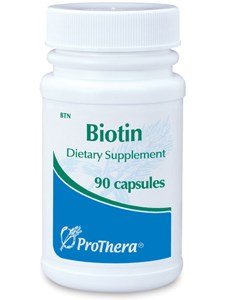 Studio : ProThera Publisher : ProThera Binding : Health and Beauty Product Description Biotin 90 capsules Dietary Supplement ProThera products may only be purchased by Health Care Professionals. Patients who want to buy ProThera products may obtain them from their Health Care Professional. Suggested Use: 1 capsule daily with food. Supplement Facts Serving Size 1 Capsule Servings Per Container 90 Amount Per Capsule Biotin USP 5 mg Other ingredients: Cellulose vegetarian capsule (hydroxypropyl methylcellulose water) L-leucine and silicon dioxide. Free of the following common allergens: milk/casein eggs fish shellfish tree nuts peanuts wheat/gluten corn yeast and soybeans. Contains no artificial colors flavors or preservatives. Do not use if full-bottle shrinkwrap is broken or missing. Store in a cool dry place (59 F-85 F) away from direct light. KEEP OUT OF REACH OF CHILDREN. 0