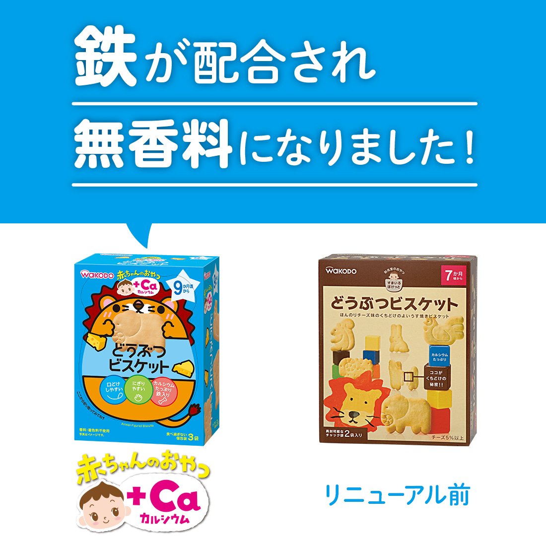 お子さまの月齢に合った口どけ・固さ・味付けに配慮し、にぎりやすい、つまみやすい形状にしたママも安心してあげられる鉄やカルシウム入りのおやつシリーズです。ほんのりチーズ味の、甘さ控えめのビスケットです。パッケージのどうぶつ部分が切りとれてお子さまと楽しめます。育ちざかりのお子様にあげたい栄養素を配合しています。