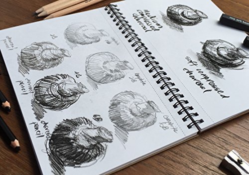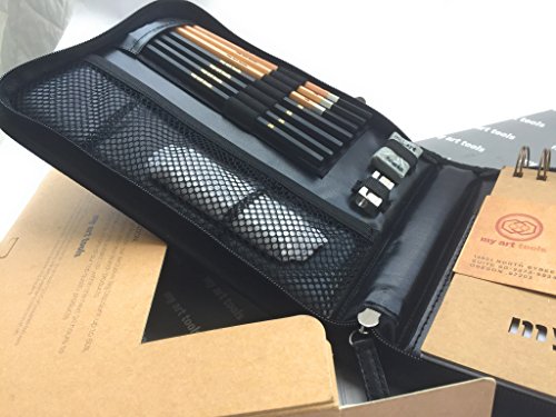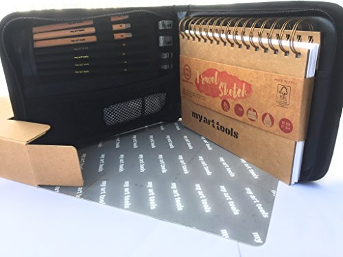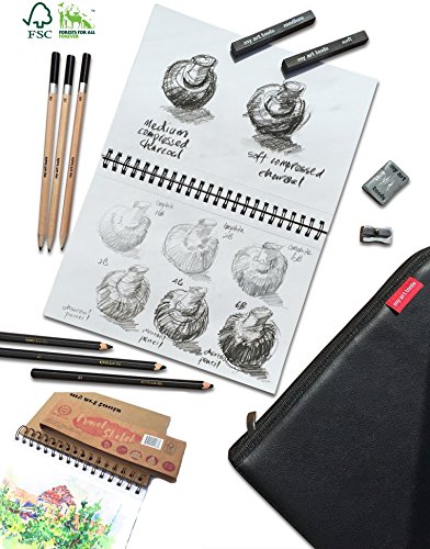 10 pcs art set supplies include (refillable) 220gsm thick, spiral bound sketch book for charcoal art drawing and watercolor wash, quality to go pencils case (black), graphite, charcoal sticks and more