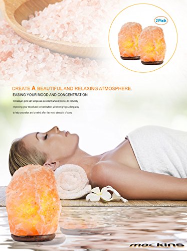 mockins 2 PACK Natural Hand Carved Himalayan Salt Lamp With A Stylish Wood Base & Bulb With On and Off Switch 6 - 8 Inches 5 - 7 lbs - Holiday Gift …