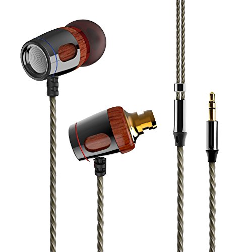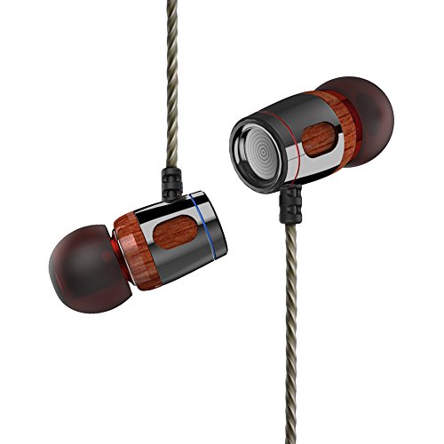 Bearshifu In-ear Wood Headphones, Earphones with High Fidelity Sound, HiFi Music Metal DJ Stereo Sport Headset (Rosewood)
