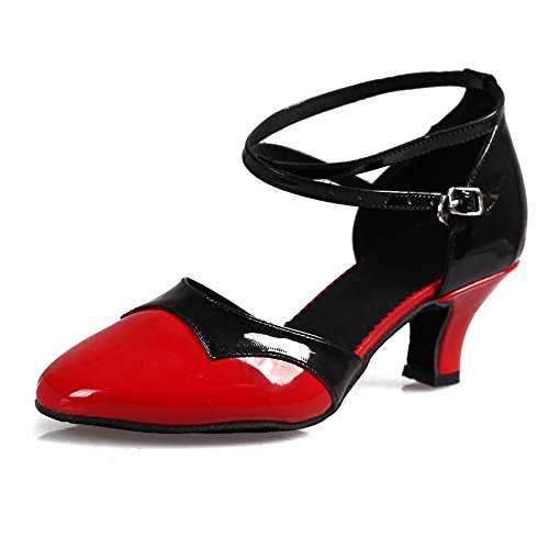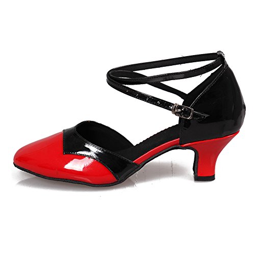 Roymall Women's Black+Red,Fashion PU Leather Tango Ballroom Latin Party Dance Shoes Model 513