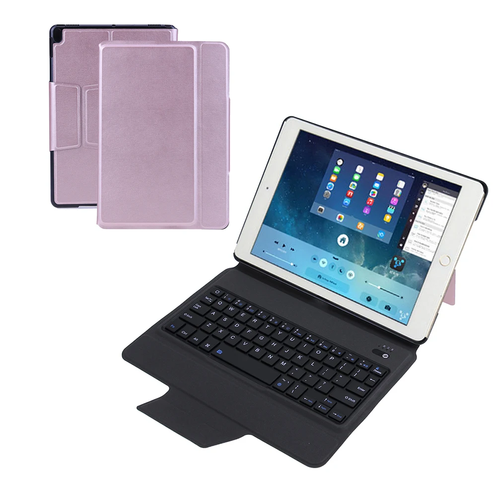 ポータブルワイヤレスbluetoothキーボードipad用プロ10.5インチでpu折りたたみケースカバースタンドフルボディ保護ケースホルダー