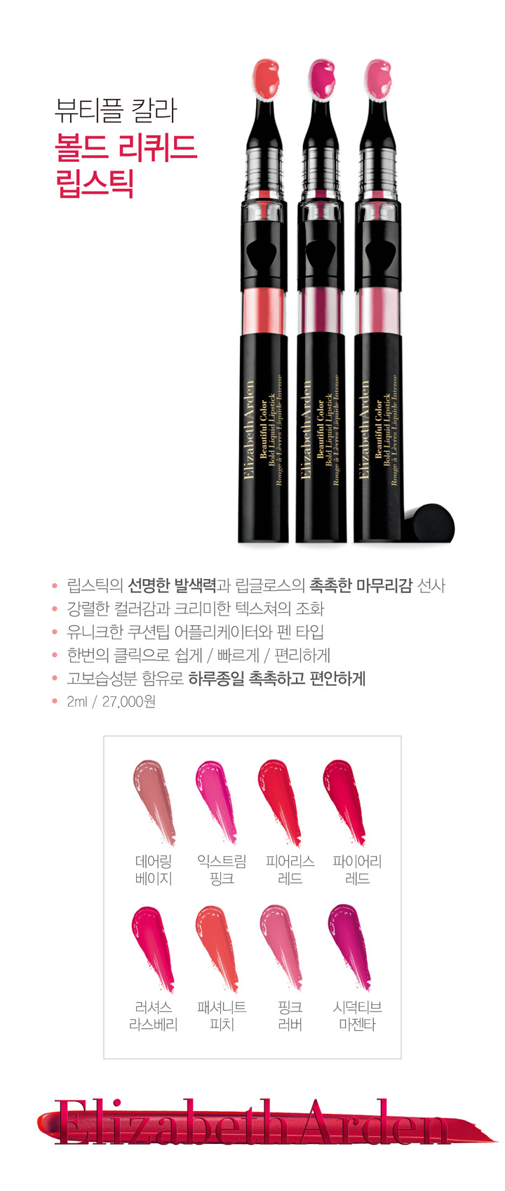 뷰티플 컬러 볼드 리퀴드 립스틱 2ml (8색)