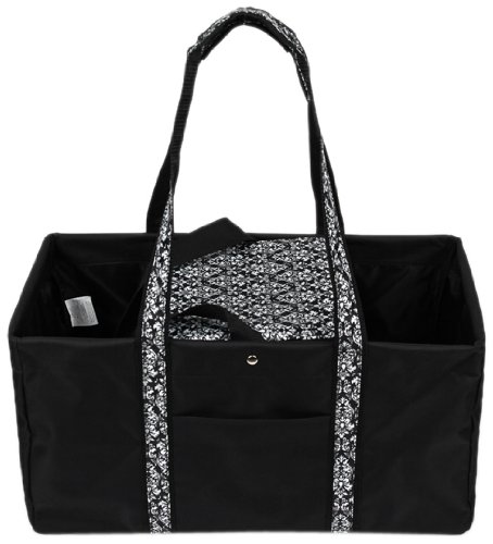 Sachi 194-146 Fashion Utility Lunch Tote with Insulated Cooler, Black with Black and White Damask