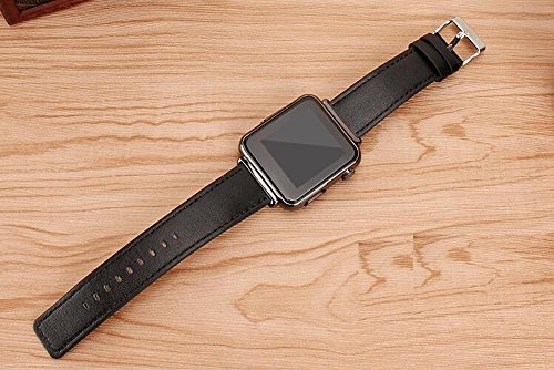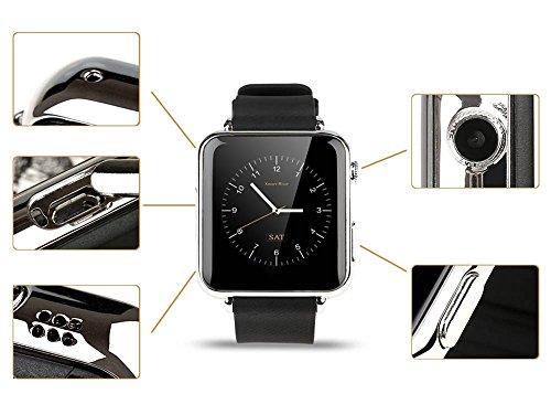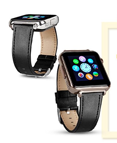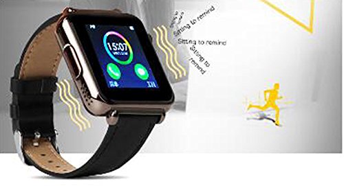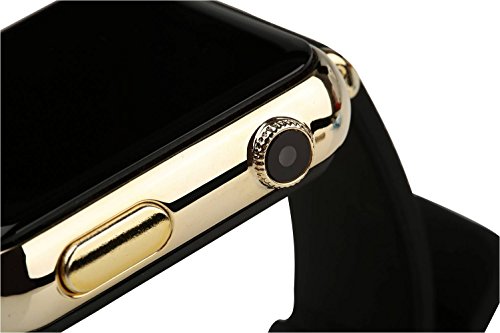 New Y6 Smart Bluetooth Watch Yellow Gold Case with Black Leather Strap, HD Touch Screen Display Built-In SIM Card Slot Camera Video Recording (Black Leather Strap)