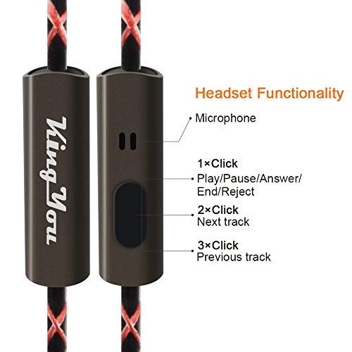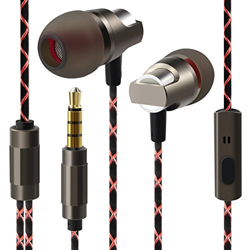 KingYou Earbuds Headphones In-Ear Nosie Isolating Heavy Deep Bass Earphones with Mic for iPhone iPod iPad MP3 & MP4 Players Android Tablet PC (Grey)