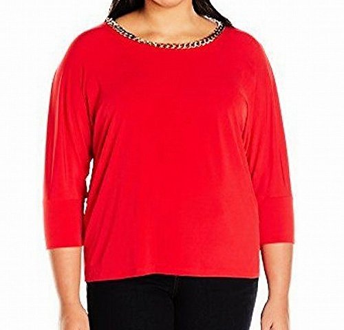Calvin Klein Women's Plus Size 3/4 Sleeve Top W/ Chain