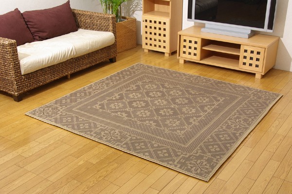 【商品名】麻混カーペット 『FXカルチャー』 ブラウン 江戸間2畳 174×174cm(中材:ウレタン) 正方形