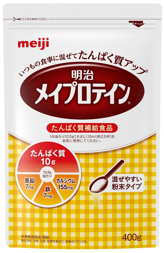たんぱく質が不足しがちな方に。「明治 メイプロテイン 大袋 400g」は良質なたんぱく質である乳清たんぱく質を主に使用しています。