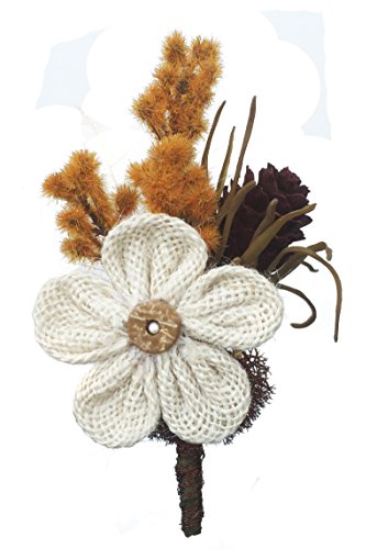 Florever Mens Boutonniere Ivory Burlap Harvest Chocolate Rustic Fall Prom