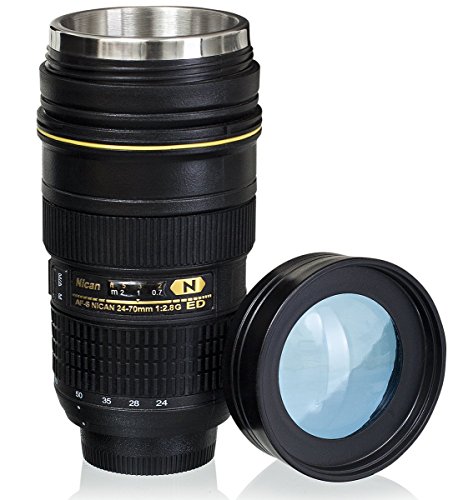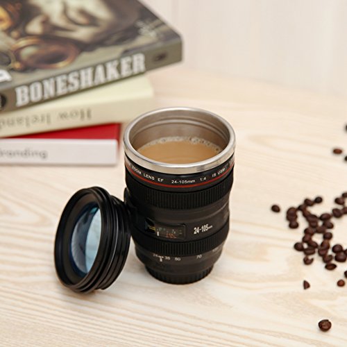 【Novelty Design】:This Camera Lens Coffee Mug is a replica of Lens Model EF 24-105mm f / 4L IS USM Lens, with 12oz / 350ml Capacity when filled up, 9 ounces if covered with lid.