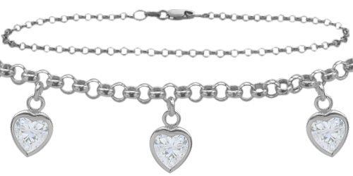 -. Title : 10K White Gold Belcher Anklet with 2.55 Carat Genuine White Topaz Heart Charm
