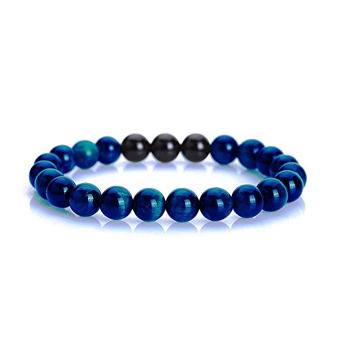 -. Title : FELEICIS JEWELRY 8mm Women's Blue Tiger Eye Gemstones and Black Onyx Beads Stretch Bracelet, 7"