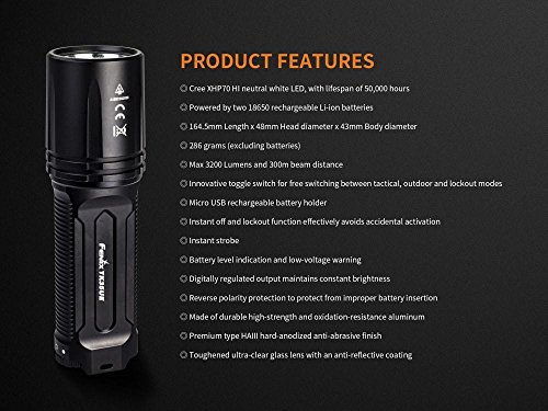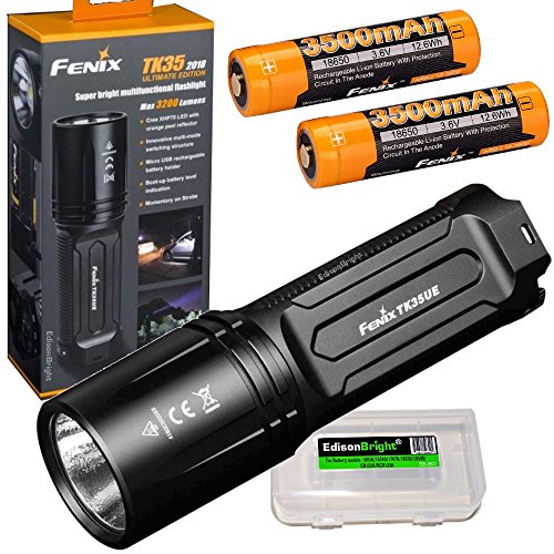 FENIX TK35 Ultimate 2018 Edition 3200 Lumen LED USB rechargeable Tactical Flashlight /w 2 X Fenix 3500mAh rechargeable batteries EdisonBright battery carry case bundle