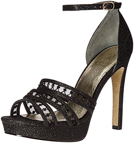 Product DescriptionMesh and crystal platform sandal with ankle strap0