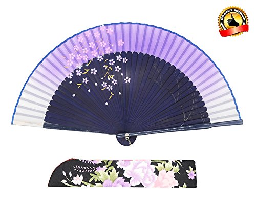 LYSA"Sakura-Long-Legs" 8.27"(21cm) Women Hand Held Silk Folding Fan With,and Silk Tissue Protective Sleeve --- Chinese/Japanese Style (Purple-CT006)