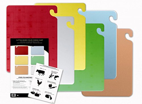 San Jamar CB1218KC 6 Piece Cut-N-Carry Co-Polymer Board System Set with Color Coding Chart, 18" Length x 12" Width x 1/2" Thick