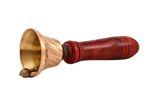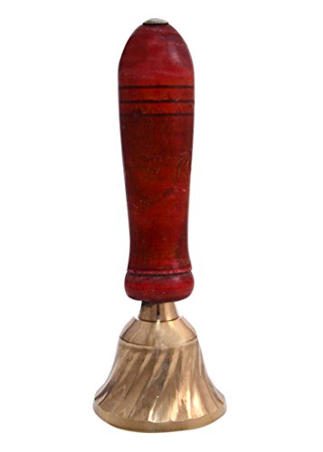 Hashcart Hindu Hand Held Bell - Brass & Wooden Puja Pooja Prayer Ghanti - Indian Hindu Festivals & Christmas (6 Inch)