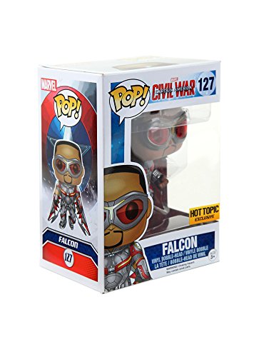 -. Binding : Toy -. Brand : FunKo -. Color : MULTICOLORED -. EAN : 0849803072261 -. Feature : Funko Pop! Marvel Captain America Civil War Falcon #127 (Exclusive) / Comes packaged in a window display box / A great gift for Xmas and birthday / Stands 3 3/4 Inch tall! tall Perfect for your desk or shelf! / Check out the other Marvel Pop figures from Funko! Collect them all! -. IsAdultProduct : 0 -. Label : Funko -. LegalDisclaimer : Damaged Box Sticker May be missing, No Returns. -. Manufacturer : Funko -. Model : 7226 -. MPN : 7226 -. NumberOfItems : 1 -. PackageQuantity : 1 -. PartNumber : 7226 -. ProductGroup : Toy -. ProductTypeName : TOYS_AND_GAMES -. Publisher : Funko -. Studio : Funko -. Title : Funko Pop! Marvel Captain America Civil War Falcon #127 (Exclusive) -. UPC : 849803072261