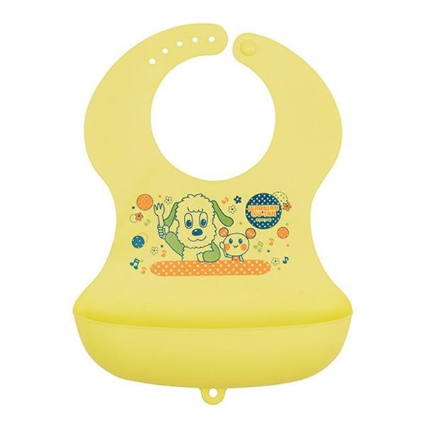 | 首回りは5段階に調整でき、首回りの食べこぼしもしっかりガードできます!!くるっと丸めて収納でき外出時にも便利です♪キャッチポケット、乾燥用ひっかけ穴付き。 |