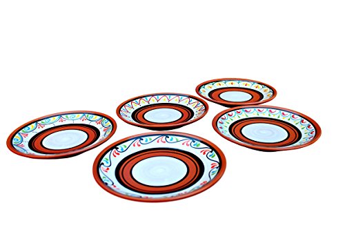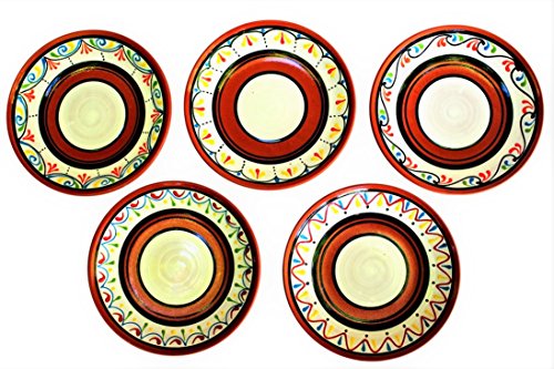 Product Description This beautiful set of terracotta salad plates is perfect for the tabletop. This is a very nice sized salad plate. The colors are beautiful and are set off by the white and terracotta. The hand painted terracotta plates are quite durable and stack nicely. Please note, that since each plate is handcrafted and hand painted, there will be small imperfections that make each piece unique and special. These salad plates are perfect for entertaining and serving appetizers, snacks or tapas. Cactus Canyon Ceramics also offers a dinner and tapa plate sets, as well as bowls, cups and serve-ware. You can find sets in our Terracotta White, but also in colors! Thank you. 0