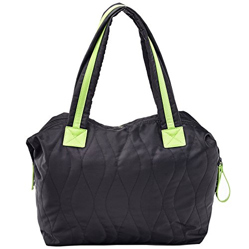 Dream Control Quilted Nylon Contrast Tote Shopping Shopper Shoulder Bag Black