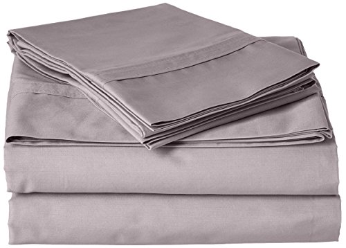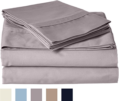 Tribeca Living 300 Thread Count Egyptian Cotton Deep Pocket Sheet Set, Queen, Solid, Grey