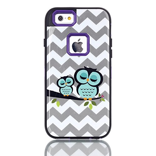 iphone 6s Case, CexCob Chervon Cute Sleeping Owls [Shockproof 3 in 1 Hybrid] Rugged [Heavy Duty Combo] High Impact Durable Back Case Cover for Apple iphone 6s / 6, Purple