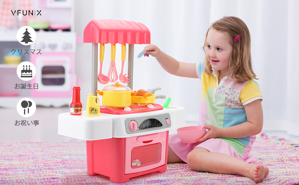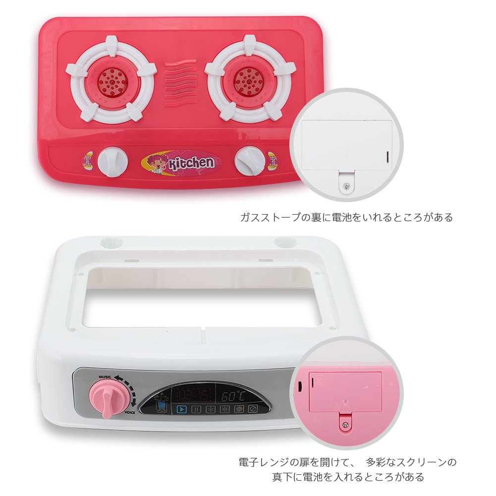 ☺想像力は無限に広がるおままごと:電子レンジや、二つのコンロ、調理器具、食材セットと合わせて本格的なおままごとが楽しめます。お子さまの好奇心を満たしながら、コミュニケーション能力や想像力を育てます。