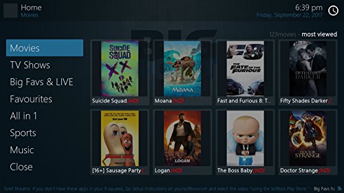 -. Feature : BUILT IN TECH SUPPORT: Softbox has built in LIVE TECH SUPPORT. One of our techs can log on to your Softbox remotely and help if you ever need anything.Comes with the Latest S905w chip Quad Core Android 7.1.2, with True 4K video and HDR. / BUILT IN LIVE CHAT SUPPORT Softbox has built in Email, and LIVE Chat support right from your box or right from any of your devices. Storage space is 16gig of rom easily up-gradable to 128gigs of space.(using a micro SD card) / EASY HELP VIDEOS FOR EVERYTHING Softbox has a built in help menu that seamlessly connects you to Help videos on any aspect of the box. Softbox has a video instruction from everything from "Connecting to your TV" to "How ". It comes with a really nice remote that feels great in your handsto save your Favorite Shows / EXCLUSIVE BIGSOFT PRO Comes with Bigsoft Pro: Bigsoft Pro is personalize fork of Kodi that has monthly updates built in so your box never gets outdated. Softbox is designed, and produced in Greenville, SC. Each one is carefully crafted and tested to be the utmost quality and have the most modern software available. To sum it up, "Yes it is on Softbox!" If you would like to see the box in action check out our youtube channel! go to youtube and find the channel Softbox