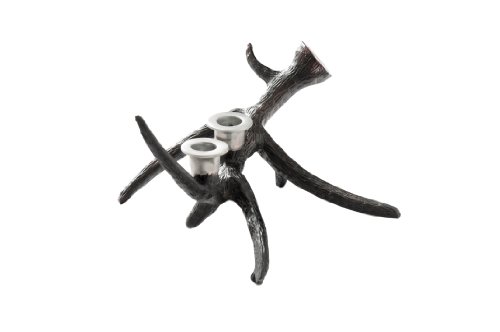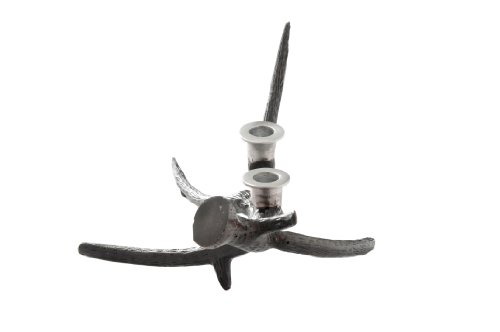 Rustic Branch Metal Candle Holder. Antiqued Bronze with Polished Nickel Holders. Designed for Two Taper Candles. Solid Metal Stand.