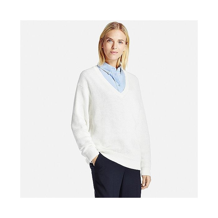 Uniqlo 유니클로 WOMEN over사이즈V넥 스웨터(긴 소매) - 188474