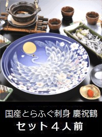 ![]() | 燃料の高騰や水揚げの減少などで、天然のふぐは 年々難しくなっています。 ふく太郎の天然ふぐ料理は、輸入物をいっさい使わず、 日本近海で獲れる天然ふぐにこだわって商品作りをしております。 ごまふぐは石川、山形他の国内で水揚げのものを仕入れています。 とらふぐはタンパク質20%・脂質0.1%の高タンパク低カロリーな魚。 ヘルシーで美味しいなんて、最高ですね! |