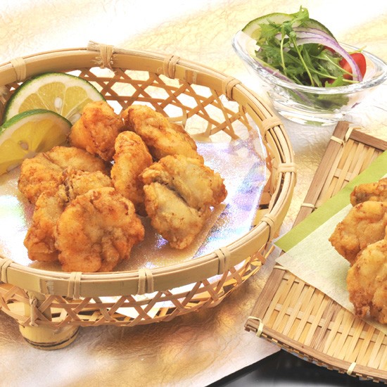 ![]() | 外はカリッ!と、中はプリッ!とやみつきになる美味しさ♪ マフグはから揚げにすると、身の甘さと弾力が増し、 美味しさがいっそう膨らみます。 うま味の濃い骨付きの身に程よく味付し衣をつけています。 プリっと。フグのいっぱいのうま味をお楽しみください。 170℃の油で2、3分サッと揚げるだけですぐに召し上がれます。 お好みでレモンやかぼす、一味をつけても。 |