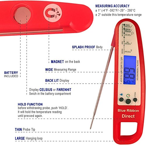 - Built in Magnet for your fridge, and built in temperature guide on the thermometer!